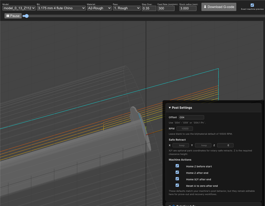 It also works bit by bit now. For each cutter, it calculates feeds, RPM, and stepover.